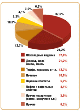 Российский кондитерский рынок – один из самых больших в мире. По производству кондитерских изделий Россия занимает четвертое место после Великобритании, Германии и США. Основными производителями, на которых приходится практически 90% выпуска кондитерских изделий в России, сейчас являются "Объединенные кондитеры" (около 30% рынка), Kraft Foods (18%), Nestle (15%), Mars (13%). По 6% имеют Cadbury и "СладКо".