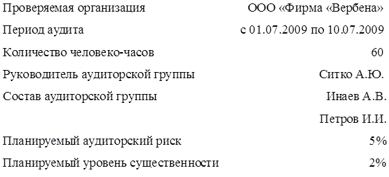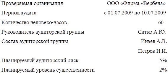В соответствии с договором № 125 от 30.06.2009 года аудиторская фирма ООО "Аудит-Юг" провела аудит организации и состояния учета операционных расходов на основании внутрихозяйственной и финансовой отчетности предприятия ООО "Фирма "Вербена" (учетная политика, график документооборота, первичные документы, форма №2-м "Отчет о финансовых результатах", данные налоговой отчетности) по состоянию на 1 января 2009 года (за 2008 год).
