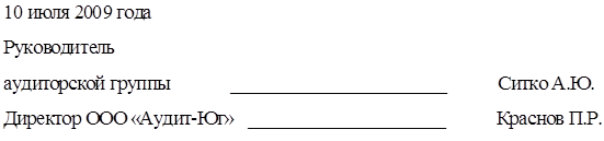 Аудиторская проверка проводилась аудиторской фирмой ООО "Аудит-Юг", лицензия №254865 выдана АПУ от 12.04.2008 г., аудиторской группой в составе: аудиторы Ситко А.Ю., сертификат №325865, Инаев А.В., сертификат № 856547, бухгалтер-ассистент Петров И.И.