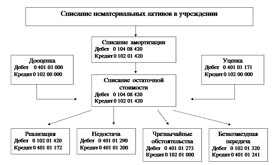 В бюджетном учете объекты нематериальных активов учитываются на счетах, открываемых к счетам 010200000—010201320" «Увеличение стоимости нематериальных активов» и 010201420 «Увеличение стоимости нематериальных активов».