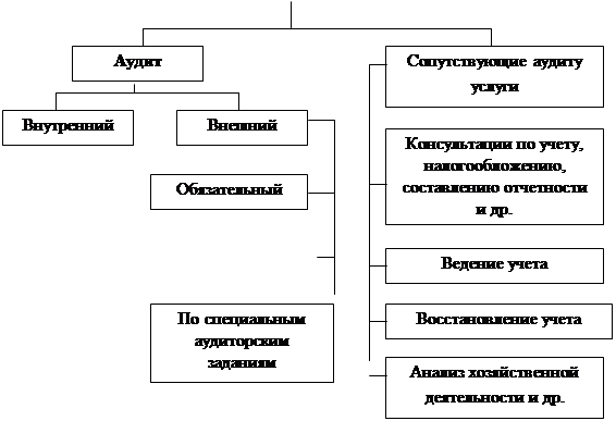 Аудиторская деятельность включает помимо проверок оказание различного рода услуг: ведение и восстановление учета, консультации по вопросам ведения учета, налогообложения, обучение и др.