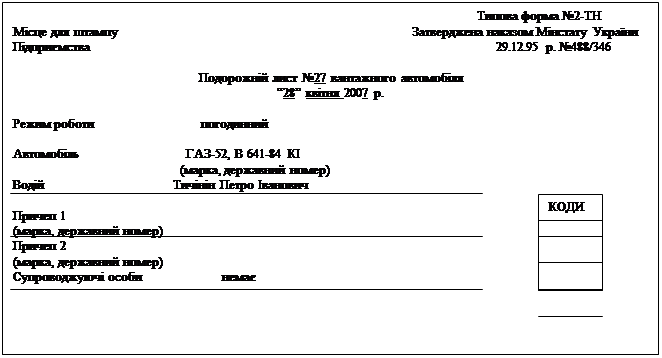 1.1.Подорожній лист вантажного автомобіля (типова форма №2-ТН)