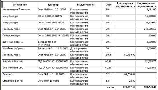 Сформируем данный отчет в произвольной форме, выбрав тип задолженности – «дебиторская и кредиторская» (рис. 3).