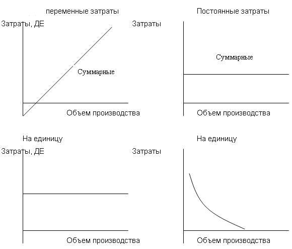 Управленческий учет затрат направлен на изучение динамики затрат и описание их поведения. Объективно описать поведение затрат можно, изучив их зависимость от объемов производства, т.е. разделив затраты на постоянные и переменные. Переменные затраты имеют определенную зависимость от объемов производственной деятельности или от степени загрузки производственных мощностей. Переменные затраты изменяются пропорционально общему объему деятельности организации или пропорционально выбранному конкретному фактору затрат. Постоянные затраты не имеют четкой зависимости от объемов производства, они более привязаны к временному фактору. Постоянные затраты остаются неизменными при изменении объема деятельности организации или конкретного фактора затрат. В таком случае можно использовать формулу: