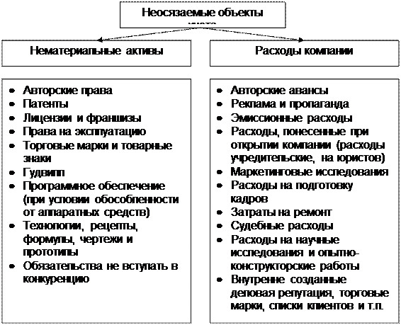 В соответствии с приведенными признаками неосязаемые объекты учета можно разделить на две группы: