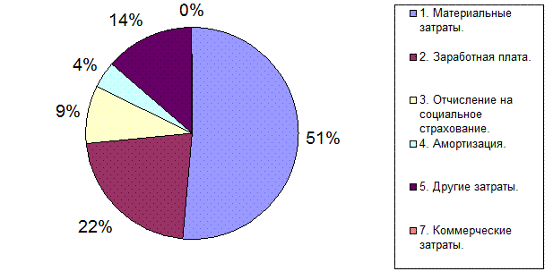 Под структурой себестоимости продукции (работ, услуг) понимается поэлементный состав затрат в общей стоимости затрат, удельный вес различных элементов затрат на производство продукции. Их структура формируется под влиянием различных факторов: характера производимой продукции и потребляемых материально- сырьевых ресурсов, технического уровня производства, форм организации размещения, условия снабжения сбыта.