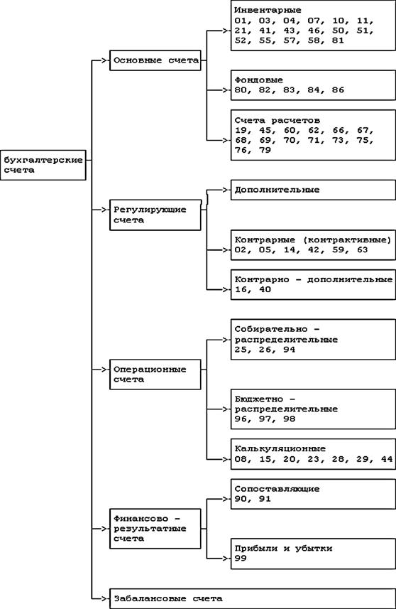 Рис. 1. Классификация бухгалтерских счетов по назначению и структуре показателей