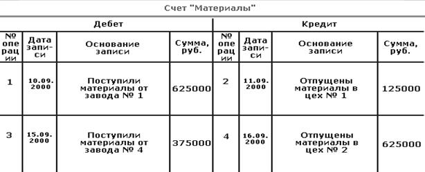 Схема счета представлена в табл. 1 , на примере счета « Материалы » [3] .