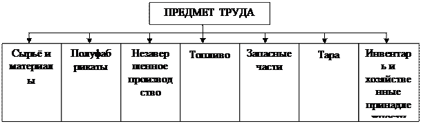 – это часть имущества, на которую воздействует человек в процессе труда при помощи средств труда. Предметы труда однократно участвуют в процессе производства и целиком переносят свою стоимость на изготавливаемую продукцию (оказываемые услуги). К ним относятся сырье и материалы, топливо, полуфабрикаты, незавершенное производство, запасные части, тара.