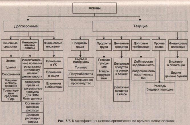 Классификация активов хозяйствующего субъекта по видам![]() |