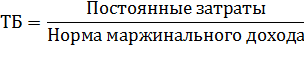 Разновидностью метода уравнений является метод маржинального дохода , при котором точка безубыточности (порог рентабельности) определяется по следующей формуле:
