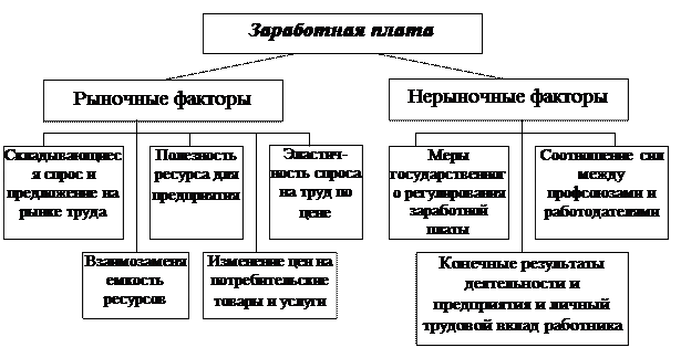 В условиях рыночной экономики на величину заработной платы воздействует ряд рыночных и внерыночных факторов, в результате чего складывается определенный уровень оплаты труда.