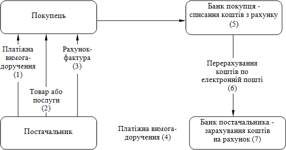 Платіжна вимога-доручення являє собою вимогу постачальника до покупця оплатити на підставі направлених йому поза банком розрахункових і відвантажувальних документів вартість поставленої за договором продукції, виконаних робіт і наданих послуг.