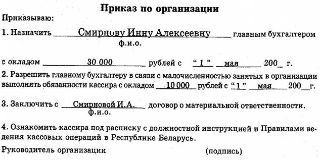 4) должны быть установлены сроки сдачи документов в бухгалтерию.