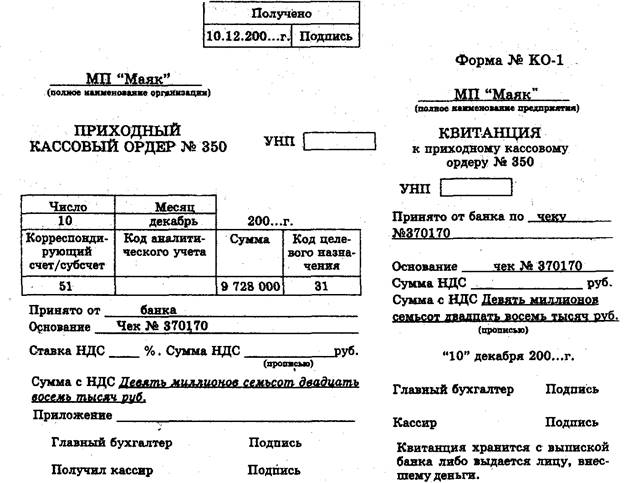 1) денежные (приходные и расходные кассовые ордера и др.);