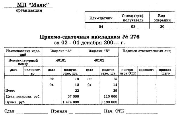 Рисунок 4 . Приёмо-сдаточная накладная.