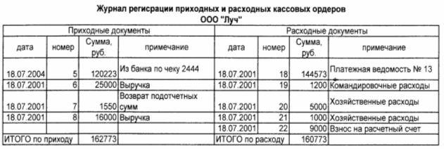 выписка из журнала регистрации приходных и расходных кассовых ордеров.