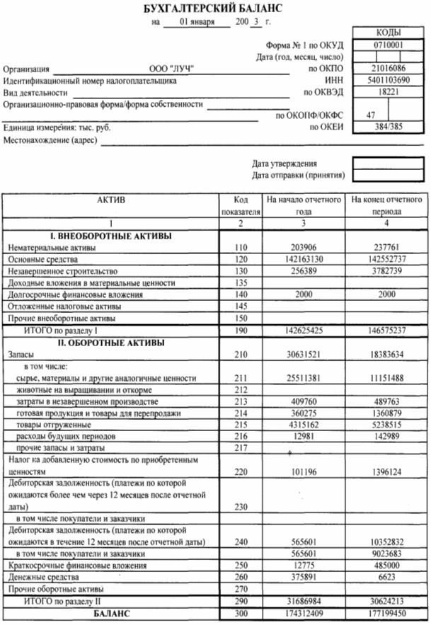 Производственную деятельность ООО «Луч» в 2003 году характеризуют следующие показатели: