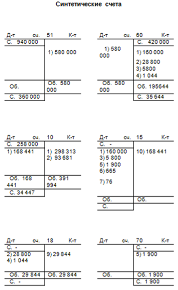 | 1 | Акцептованы счета поставщиков за приобретенные материалы (кол-во по цене за единицу): | ||||