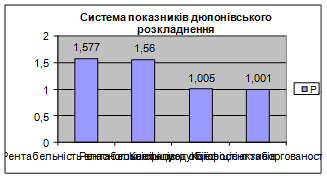 Висновок: на підприємстві “ Строймаш ” в базовому періоді (0) і в звітному періоді (t) рентабельність власного капіталу є більше одиниці, що є позитивним, засвідчує посилену ділової активності на підприємстві. Показник рентабельності продукції і коефіціент обіговості активів також є більшим одиниці (I > 0), це свідчить про те що ці показники позитивно впливають на фінансовий стан підприємства, за рахунок чого прибуток підприємства збільшився.