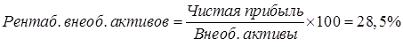 Значит, 28,5 % прибыли организация получает с каждого рубля внеоборотных активов.