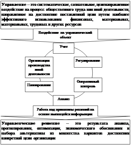 На современном предприятии управление является весьма распространяем видом деятельности. Система управления воздействует на управленческий объект посредством общих функций, взаимосвязь и взаимодействие которых образует замкнутый цикл (рис. 1).