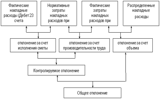 Рис.1. Анализ накладных расходов за счет трех отклонений