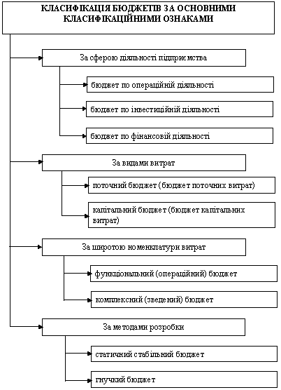 Рис. 11.1. класифікація основних видів бюджетів, що розробляються на підприємстві в процесі оперативного фінансового планування