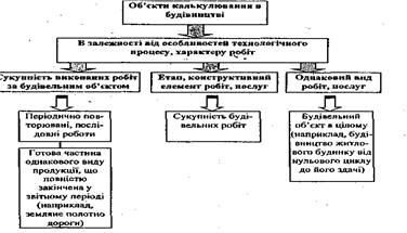 При обліку виробничих витрат на зведення споруд, пускових комплексів і будівельних об'єктів важливе значення має вибір об'єктів обліку та об'єктів калькулювання . Об'єкти калькулювання будівельного субпідрядного підприємства відображені на рис. 1.
