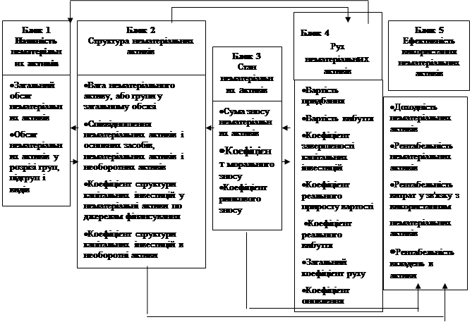 Рис. 2.3. Система взаємопов'язаних показників аналізу нематеріальних активів