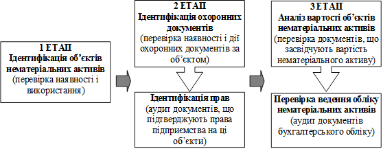 Рис. 3.1. Послідовність оцінки та контролю наявності і руху нематеріальних активів