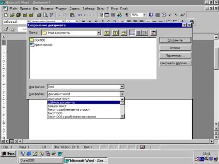 3 Выберите значение Шаблон документа в поле Тип файла. Это значение автоматически появится при сохранении файла, для которого при создании был установлен тип Шаблон.