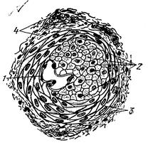 продольно расположенные эпителиоидно-мышечные клетки; 3 —