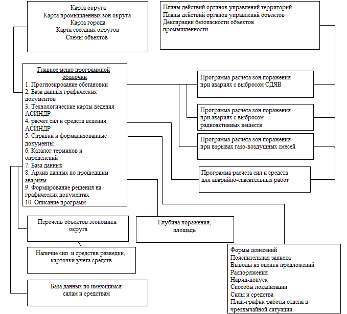 Расчетные программы, базы данных, информационно-справочные и учебные программы объединены общей программной оболочкой, которая предназначена для поддержки функционирования автоматизированного рабочего места дежурного по управлению ГОЧС.