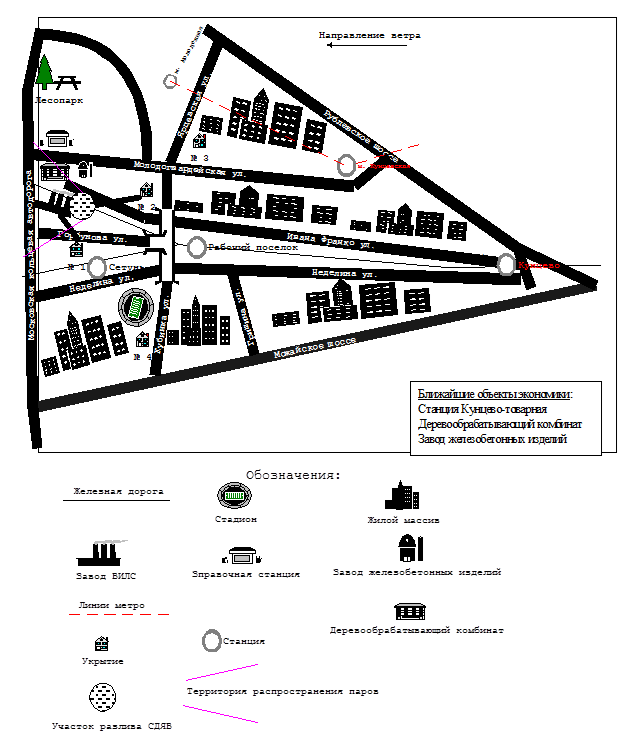 Завод легких сплавов (ВИЛС) находится в Западном административном округе на улице Горбунова. На заводе хранится аммиак и др. химические вещества. Допустим, на заводе произошла утечка аммиака.