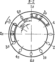 Отверстия этих каналов расположены через 30°, что соответствует 60° поворота коленчатого вала. Во фланце распределительного диска вырезано золотниковое окно, расположенное на дуге 60°.