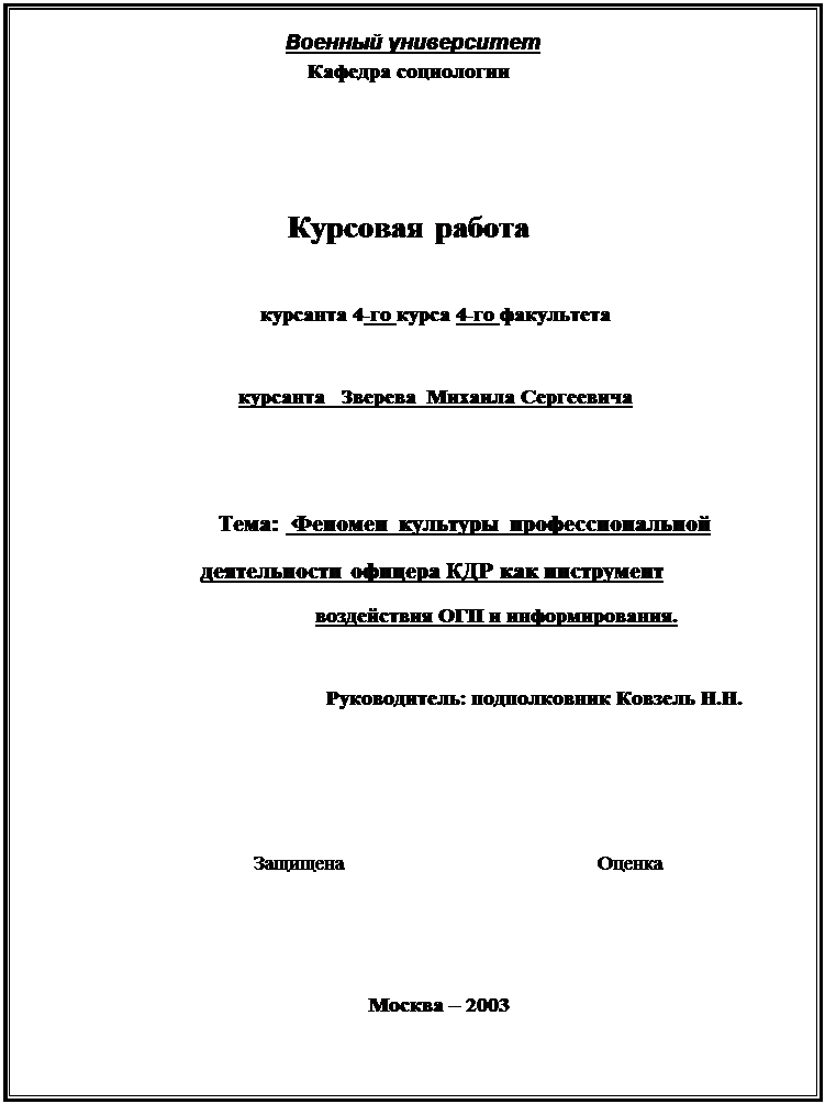 Реферат: Феномен культуры проф. деятельности офицера КДР как инструмент воздействия ОГП и информирования