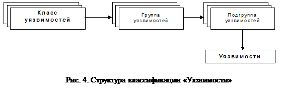 Уязвимости также можно разделить на классы по принадлежности к источнику уязвимостей, классы на группы и подгруппы по проявлениям (рис. 4.).