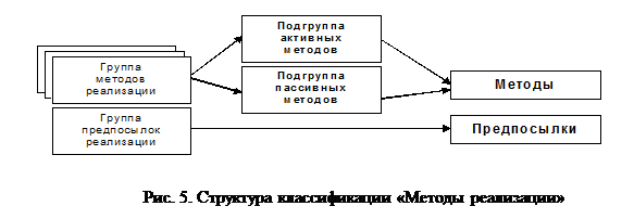 Методы реализации можно разделить на группы по способам реализации (рис. 5.). При этом необходимо учитывать, что само понятие «метод», применимо только при рассмотрении реализации угроз антропогенными источниками. Для техногенных и стихийных источников, это понятие трансформируется в понятие «предпосылка».