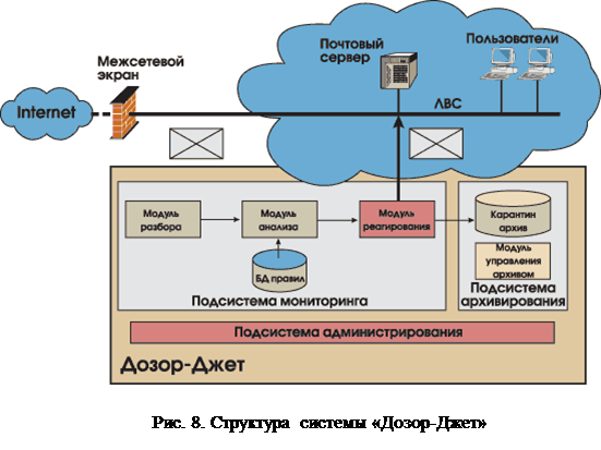 При обнаружении соответствия почтовых сообщений заданным в правилах фильтрации критериям, система осуществляет одно или несколько из заранее предписанных действий: