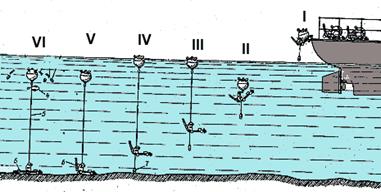 Заглубление мины (от поверхности воды до контактных замыкателей) - 0,3-1,1 м