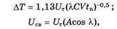 де ∆T — підвищення температури матеріалу з освітленого боку, °С; UT — кількість світлового випромінювання, яке поглинається одиницею поверхні матеріалу (тепловий імпульс), кДж/м2 ; λ — коефіцієнт теплопровідності, кВТ/(mК); CV — питома теплопровідність речовини, кДж/(м3 • К); tn = 0,02 3 √g — час початку найбільшої температури вогненного імпульсу; g - потужність вибуху, Мт; А - коефіцієнт поглинання світлової енергії матеріалом; λ - кут між напрямком поширення світла і перпендикуляром до освітленої поверхні.