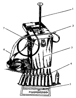 В комплекты индикаторных средств УГ-2 ( рис. 3 ) входят ампулы (5) с индикаторными и поглотительными порошками, необходимыми для изготовления индикаторных трубок (ИТ) и фильтрующих патронов, и принадлежности: трубка стеклянная индикаторная (1), стержень (2), воронка (3), заглушка (5), трубка резиновая (6), ампула НС-1 (7) и штырек (8).