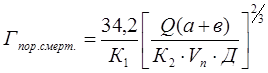 Определяем глубину токсического задымления (пороговую и смертельную) по формуле: