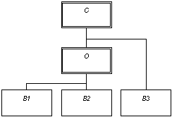К примеру, рассматривая в самом общем случае систему, состоящую из 5 элементов (рисунок 1), в которой: элемент С – орган военного управления стратегического уровня, элемент О – орган военного управления оперативного уровня, элементы В1 и В2 – воинские части оперативного подчинения, В3 – воинская часть центрального подчинения.