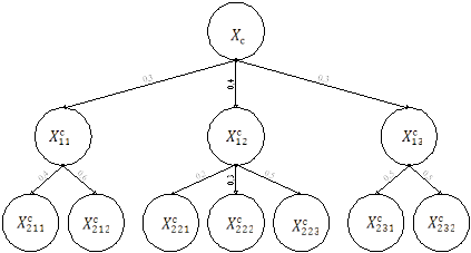 Предположим, что осуществлена декомпозиция цели и задач функционирования элемента С. В результате, построен взвешенный орграф боеспособности элемента с весовыми коэффициентами