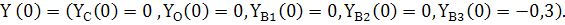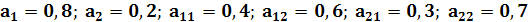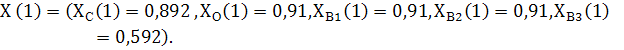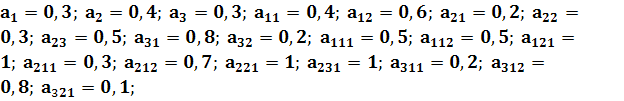 Рассматривая на первом этапе однократное распространение внешнего воздействия по всем действующим в системе взаимосвязям, с помощью (2), (3) установим снижение боеспособности элементов системы до уровня: