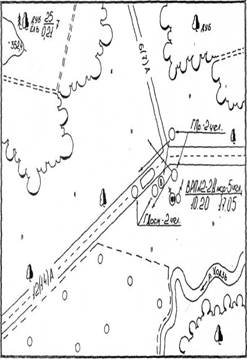 Схема боевого порядка розыскной группы у перекрестка дорог.