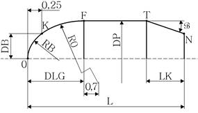 RB=1,18 мм.; DB=1,2мм.; DP= 5,55 мм.;