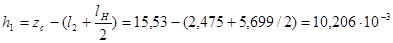 h1 - расстояние между центром масс и серединой следа нарезов.